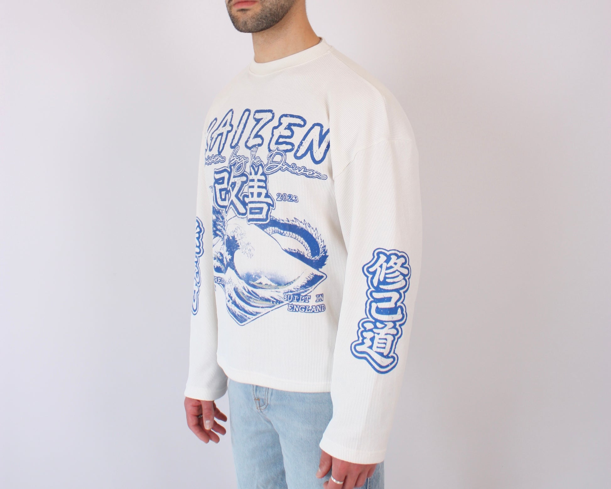 “The Great Wave” Long Sleeve Waffle Tee brings bold, detailed artwork together with a clean, structured silhouette. Designed to stand out without compromise, it commands attention while keeping a refined, intentional look.